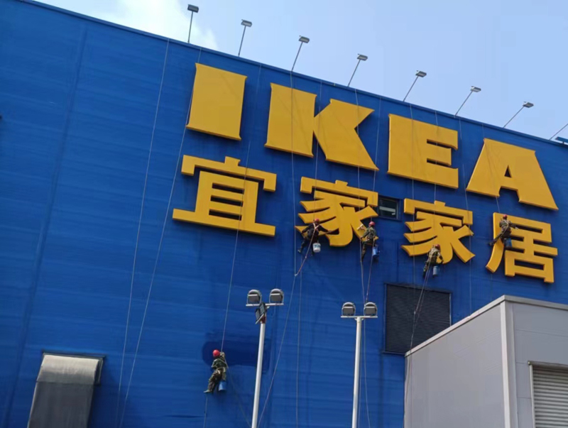 外墻清洗項目:宜家家居(上海北蔡商場)位于浦東新區(qū)臨御路臨御路550號,宜家北蔡商場設(shè)有環(huán)保實踐展間,在環(huán)保實踐展間中,宜家家居向顧客提供可持續(xù)家居生活的靈感,從廚房、客廳、臥室三個主要房間去展示如何在家降低能源消耗,減少碳排放。除此之外,宜家北蔡商場的特點還在于從運營上致力于最大程度減少碳排放。宜家家居(上海北蔡商場)外墻清洗施工現(xiàn)場照片。